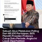 Prabowo di ujung tanduk SOSIAL MEDIA|Kamis, 26 Februari, 2026Kamis, 26 Februari, 2026oleh Admin Sebuah akun media sosial jejakaktual.id melakukan Polling/Jajak pendapat. Dari 46.100 partisipan, 92%