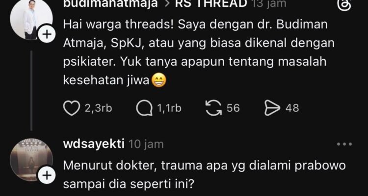 WADUH PELAN PELAN BANG 🙏 SOSIAL MEDIA|Rabu, 25 Februari, 2026oleh Admin dr. Budiman Atmaja: Hai warga threads! Saya dengan dr. Budiman Atmaja, SpKJ,
