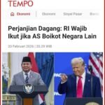 Hanya Antek Asing sejati yang menyepakati hal ini CATATAN|Sabtu, 21 Februari, 2026oleh Admin Perjanjian Dagang: RI Wajib Ikut jika AS Boikot Negara Lain Dalam 45
