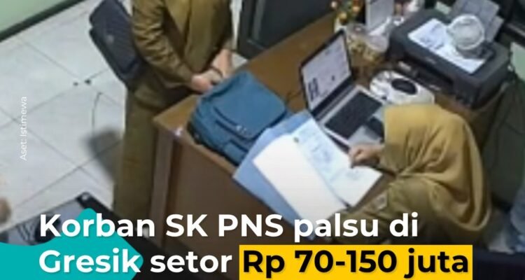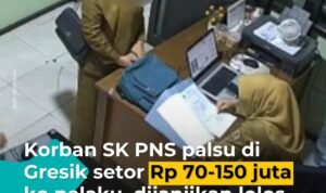15 Orang Warga Gresik Bayar 150 Juta untuk SK PNS Palsu BERITA VIRAL|Minggu, 12 April, 2026oleh Admin Kasus penipuan Surat Keputusan (SK) PNS palsu di Gresik sedang dalam penanganan