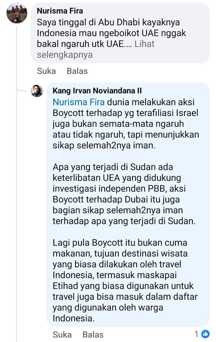 Apa yang terjadi di Sudan ada keterlibatan UEA yang didukung investigasi independen PBB, aksi Boycott terhadap Dubai itu juga bagian sikap selemah2nya iman terhadap apa yang terjadi di Sudan.