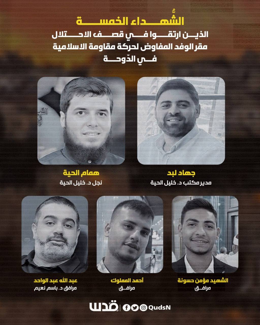 Kami, Gerakan Perlawanan Islam (Hamas), menyerukan kepada bangsa-bangsa di dunia, Perserikatan Bangsa-Bangsa, dan seluruh kekuatan hidup serta rakyat yang bebas dan berhati nurani untuk mengutuk agresi kriminal ini terhadap Negara Qatar dan mengambil tindakan segera untuk menekan pendudukan agar menghentikan perang genosida dan pembersihan etnis, mencapai keadilan bagi rakyat Palestina, dan mendukung hak sah mereka atas kebebasan dan penentuan nasib sendiri.