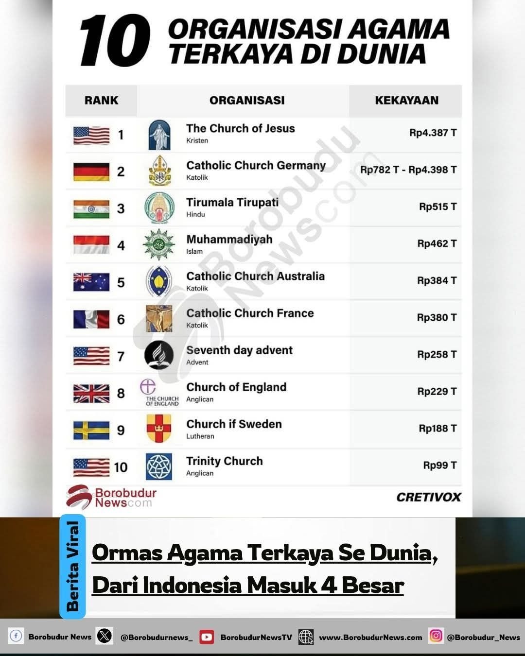 2. Catholic Church in Germany (Katolik Jerman) = $47,24 – $265,62 M