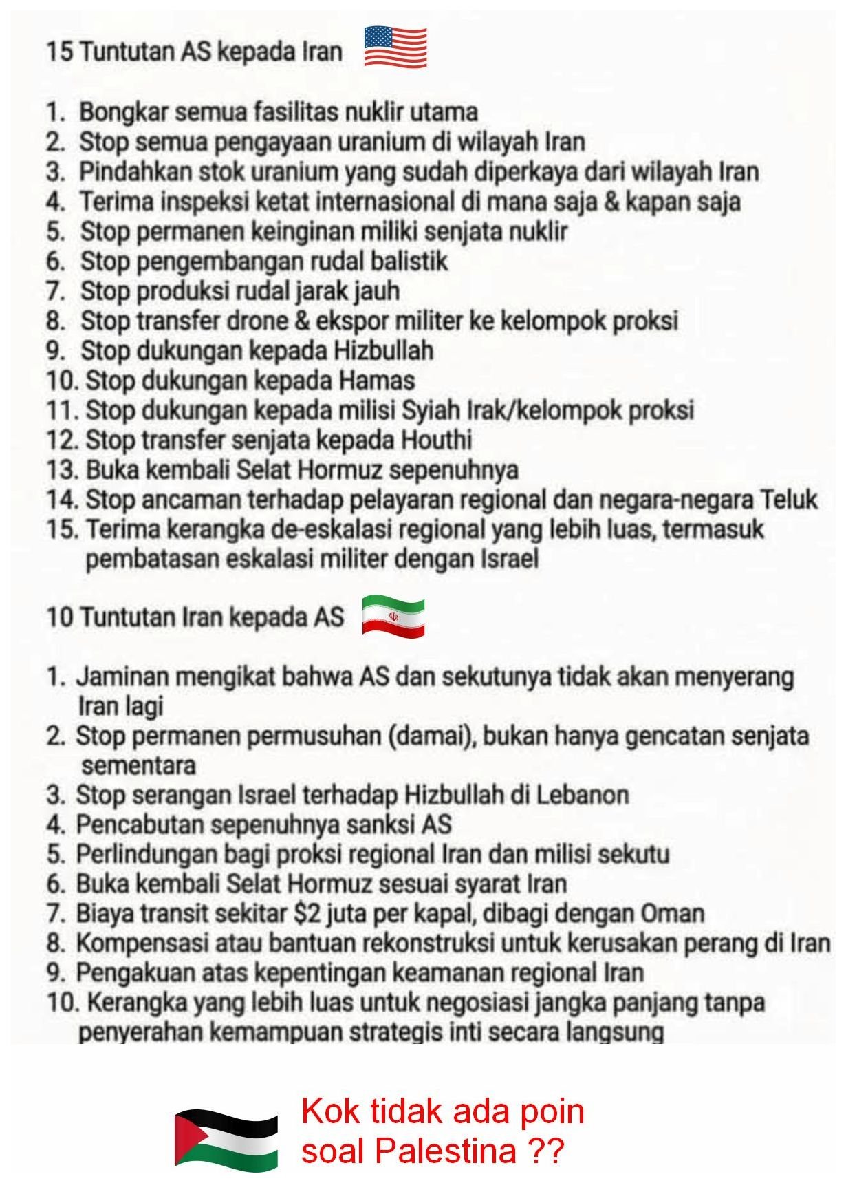 Sayangnya, ada yang kebelet plus ngebet buat bikin framing mengejek, bahwa diantara poin-poin itu tidak ada yang membicarakan Palestina.