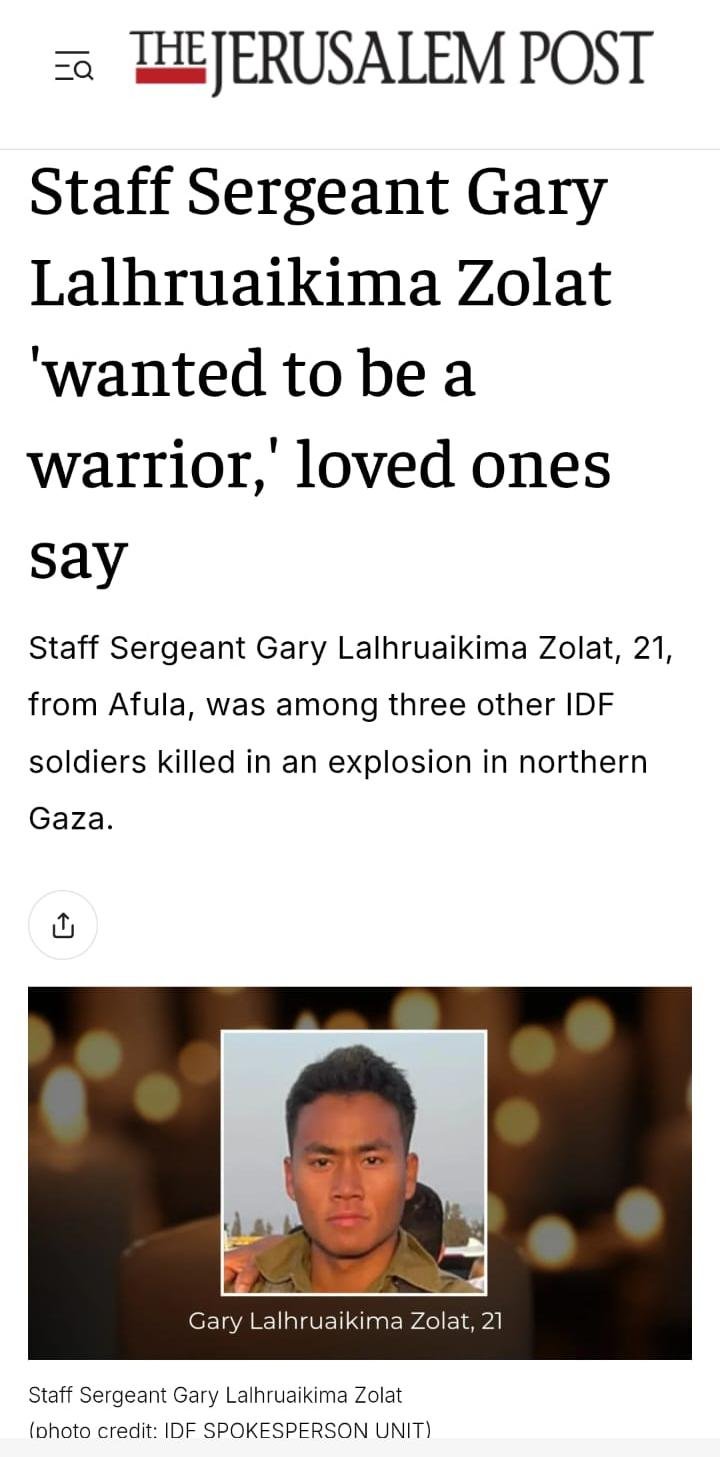 Mereka adalah Sersan Staf Gary Lalhruaikima Zolat dan saudara kembarnya Emmanuel Zolat. Keduanya merupakan bagian dari komunitas yang diyakini sebagai keturunan Bani Menashe atau Suku Terhilang Israel yang bermukim di wilayah Nusantara.