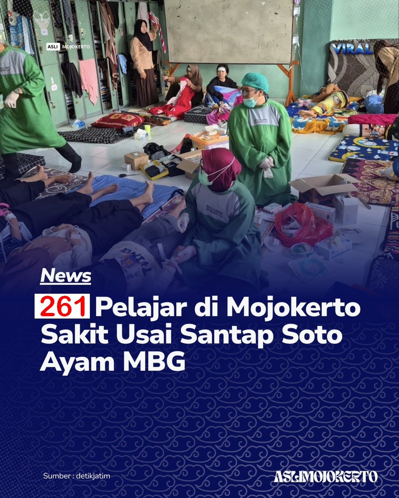 Sebanyak 261 penerima manfaat program makan bergizi gratis (MBG) di Kabupaten Mojokerto, Jawa Timur, dilaporkan mengalami keracunan.