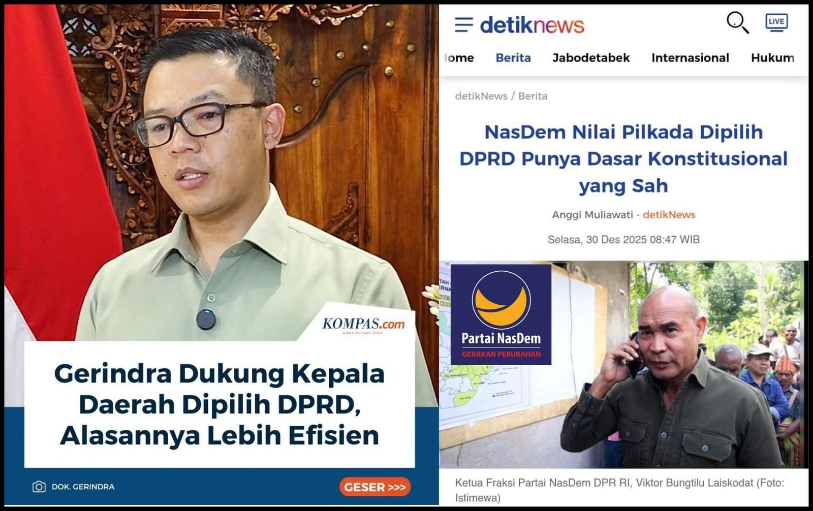 Digulirkan Golkar, diperjelas PKB, didorong PAN, didukung Gerindra, diperkuat NasDem: Pilkada lewat DPRD sepertinya akan lolos? Sudah didukung 5 partai atau 64% kursi DPR.