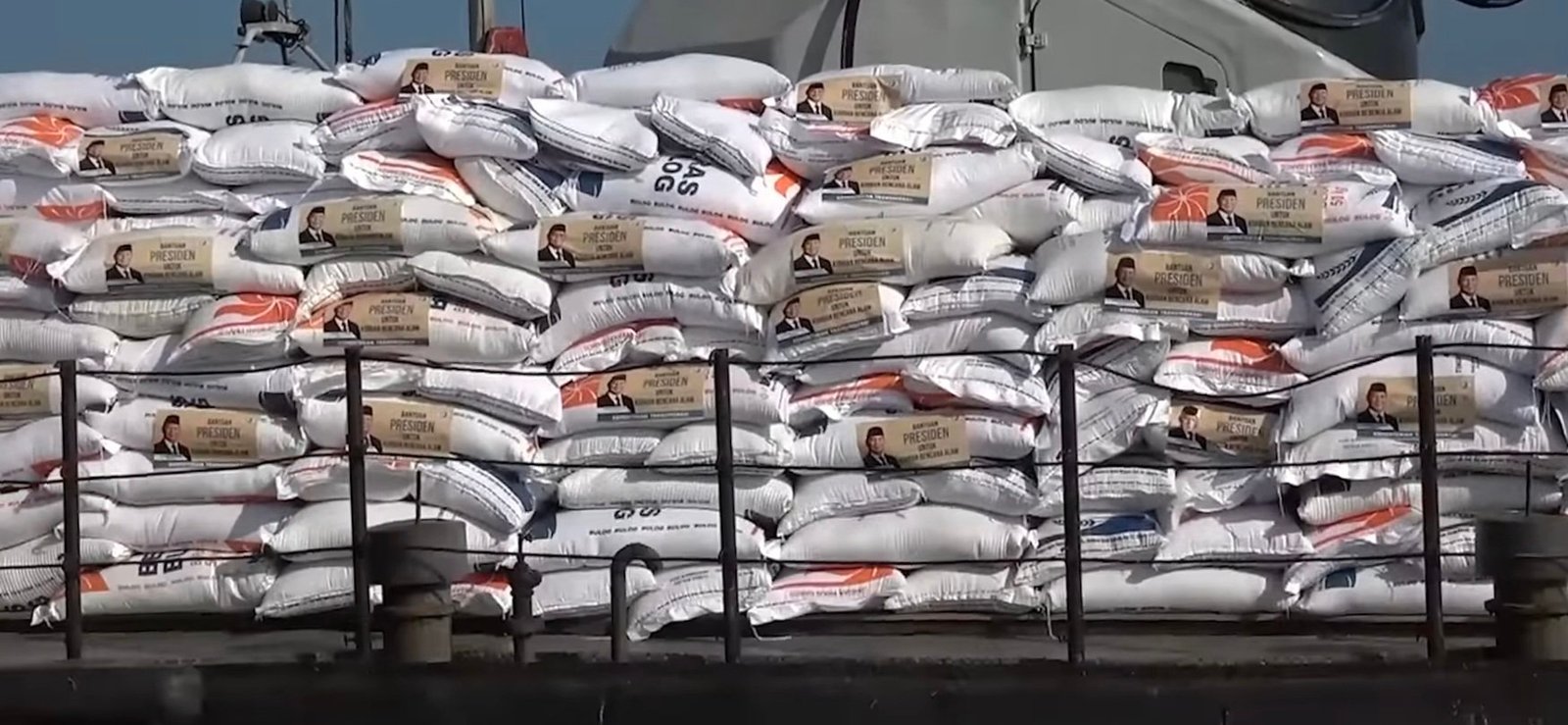 50 ton beras bantuan untuk Sumatera dikirim dengan wajah Presiden Prabowo segede gaban.