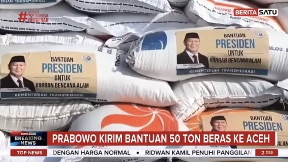 Sekarang baru terungkap: Mengapa pemerintah pusat begitu lambat mengirimkan bantuan ke lokasi bencana Sumatera? Rupanya, kegiatan menempelkan stiker bergambar Prabowo pada karung-karung beras itu yang jadi penyebabnya wkwkwk.