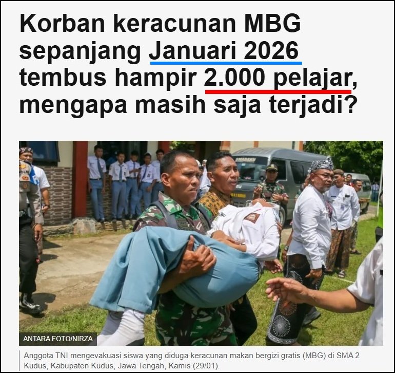 Mungkin Anda bertanya-tanya: Mengapa kemarin tidak ada kasus keracunan? Mengapa sekarang muncul lagi? Ya jelas. Kemarin itu libur sekolah. Anak-anak diberi MBG untuk satu minggu. Isinya macam-macam. Tapi jelas nilainya bukan Rp 10 ribu per hari.
