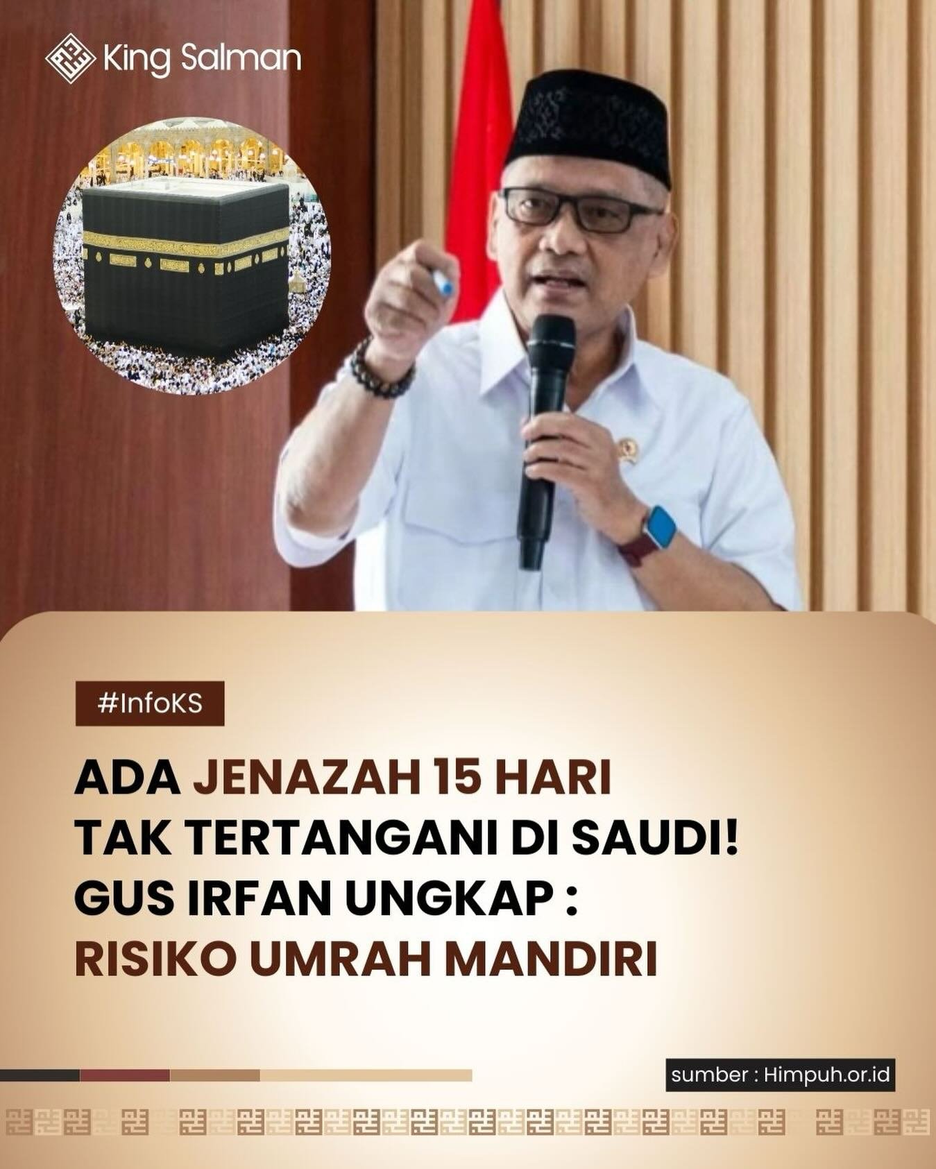 Gus Irfan kemudian membeberkan contoh nyata yang ia jumpai saat kunjungan ke Arab Saudi. Ia menyebut ada seorang jemaah asal Indonesia yang meninggal dunia saat menjalankan ibadah umrah, namun jenazahnya tidak tertangani selama 15 hari.