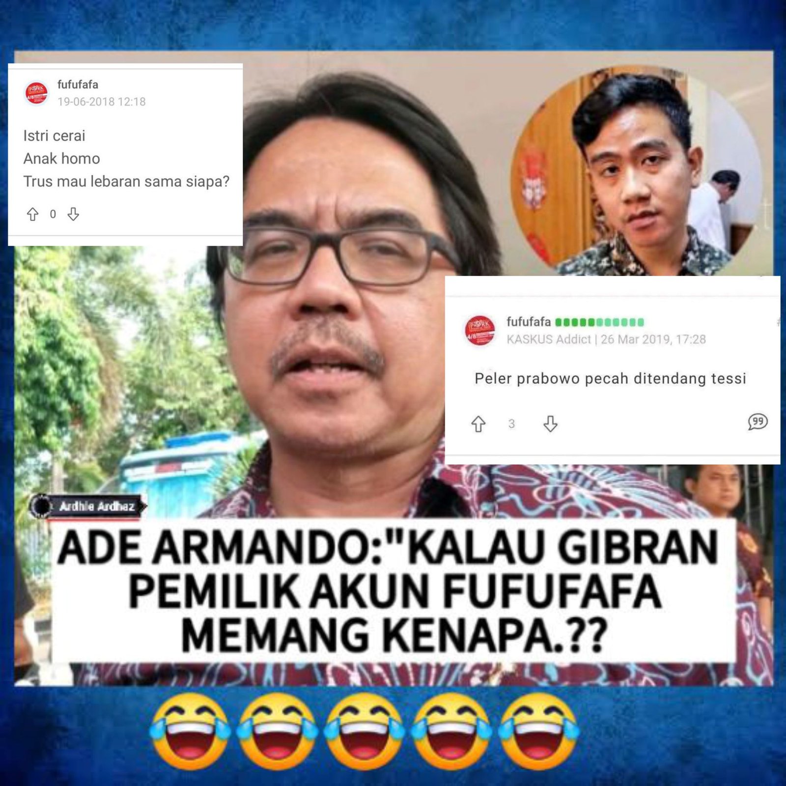 “Bagaimanapun untuk bersikap adil, saya tetap menerima mereka yang menuduh akun Fufufafa milik Gibran. Tapi dalam hal ini saya kembali ke pertanyaan awal, kalau benar akun Fufufafa milik Gibran layakkah dia dimakzulkan dengan alasan melakukan perbuatan tercela? Masalahnya, bukankah postingan Fufufafa itu terjadi di tahun 2014? Bisakah Gibran dimakzulkan karena apa yang ditulisnya di masa lalu?” ujar Ade Armando dikutip dari YouTube COKRO TV (12 Juni 2025).