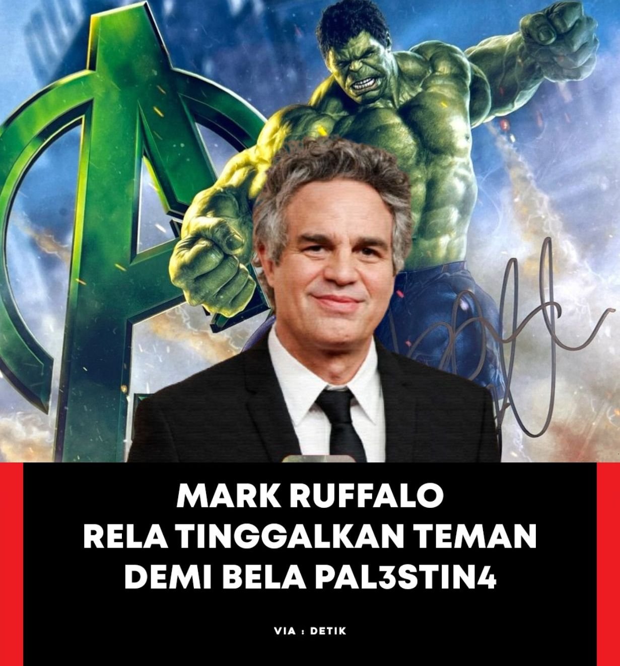 🔴Bintang Hollywood Mark Ruffalo baru-baru ini akui kalau dirinya rela putuskan hubungan dengan teman yang tidak peduli Palestina.