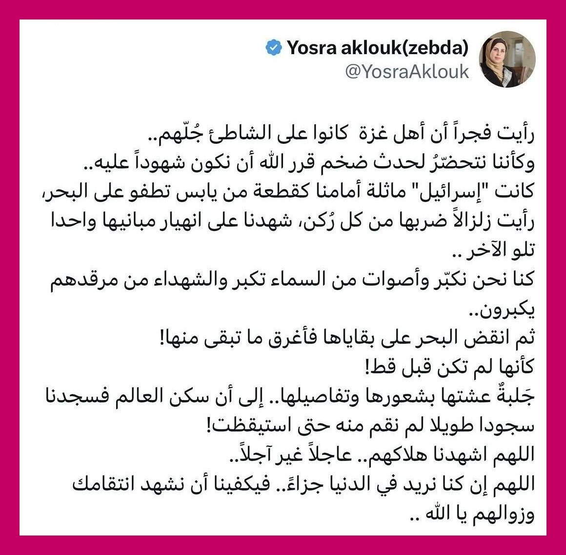 Aku bermimpi di waktu fajar bahwa penduduk Gaza sebagian besar berada di pantai. Seolah-olah kami sedang mempersiapkan diri untuk sebuah peristiwa besar yang telah Allah tentukan agar kami menjadi saksi atasnya.