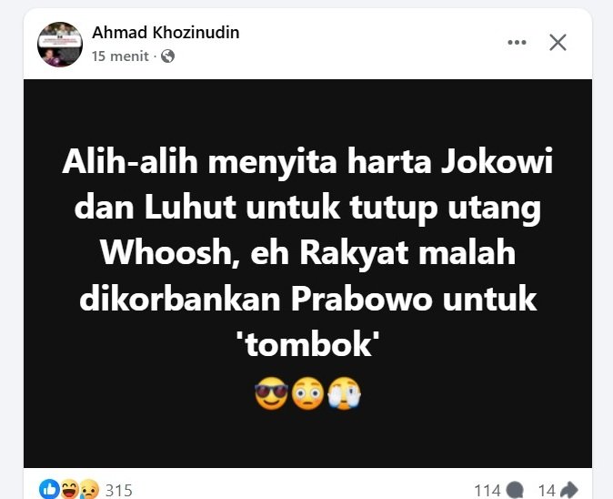 Alih-alih menyita harta Jokowi dan Luhut untuk tutup utang Whoosh, eh Rakyat malah dikorbankan Prabowo untuk ‘tombok’ 😳
