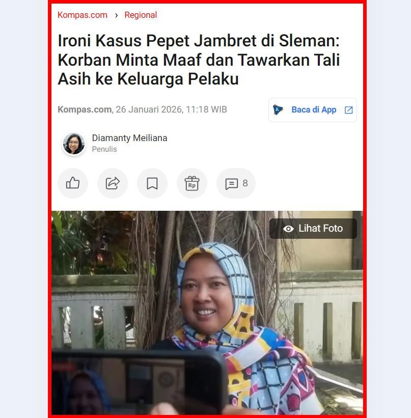 Di Indonesia? Tentu tidak begitu. Dengan APH (Aparat Penegak Hukum) hebat-hebat, yang ahli core of the core, tidak akan begini. Mereka selalu menegakkan keadilan dan kebenaran dengan paripurna. Tafsir hukum mereka adalah yang the best. Aparat Penegak Hukum di negeri ini tuh, rata-rata S3, masuk dengan seleksi super ketat, dan demi Allah, tidak ada suap, ordal, koneksi.