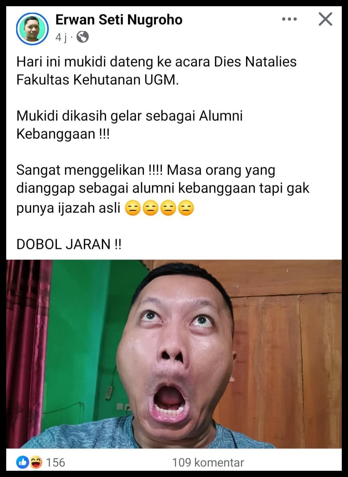 Sangat menggelikan !!!! Masa orang yang dianggap sebagai alumni kebanggaan tapi gak punya ijazah asli 😑😑😑😑