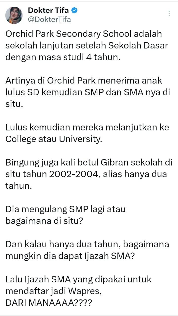 Bingung juga kali betul Gibran sekolah di situ tahun 2002-2004, alias hanya dua tahun.