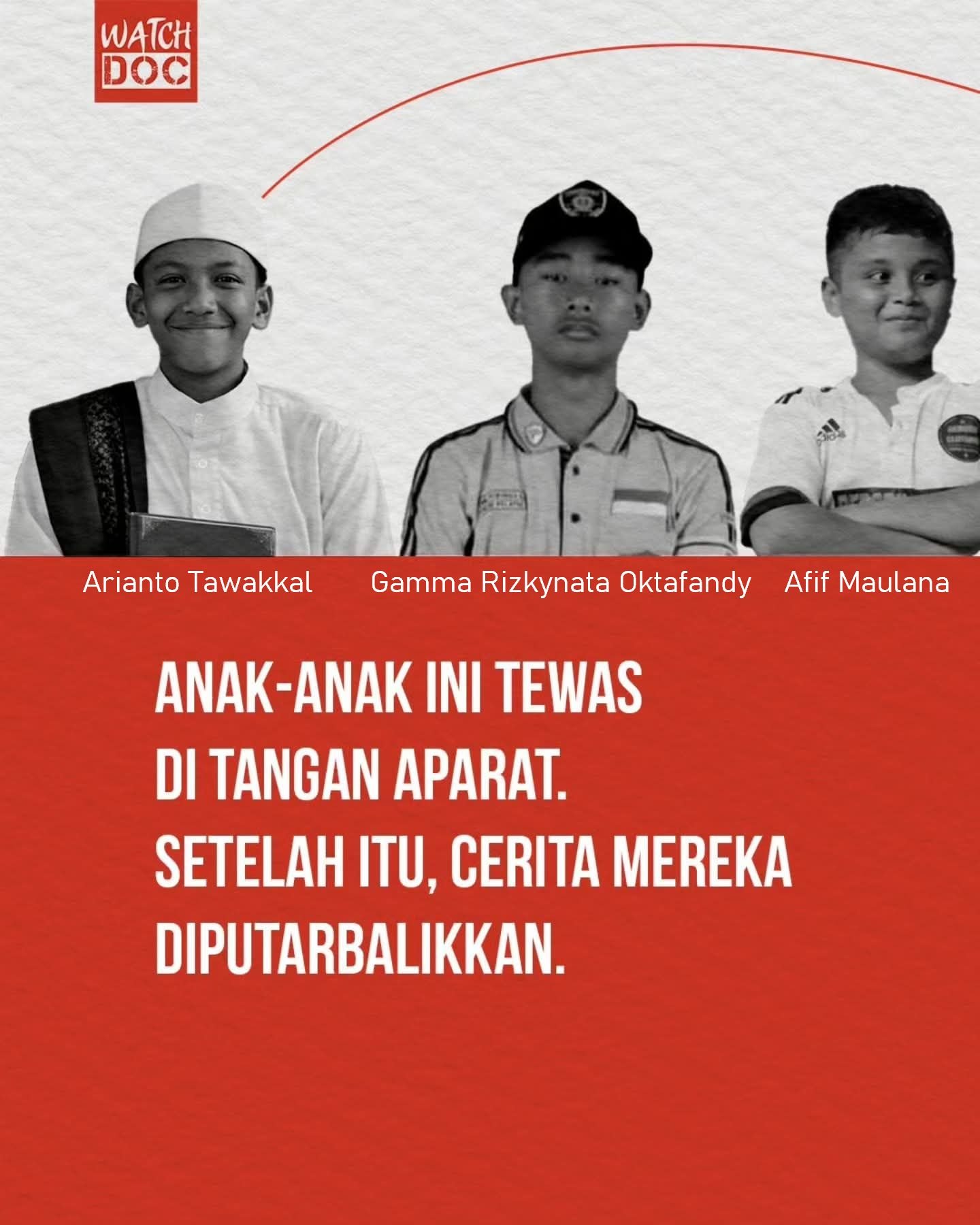 Narasi berikut merupakan kutipan dan rangkuman dari unggahan akun Watch Documentary yang mendokumentasikan sejumlah kasus kematian anak dilakukan aparat penegak hukum.