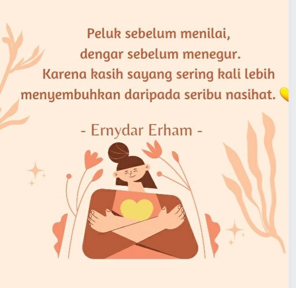 Kadang, yang dibutuhkan seseorang bukan ceramah panjang atau vonis benar salah, tapi pelukan dan telinga yang mau mendengar tanpa menghakimi.