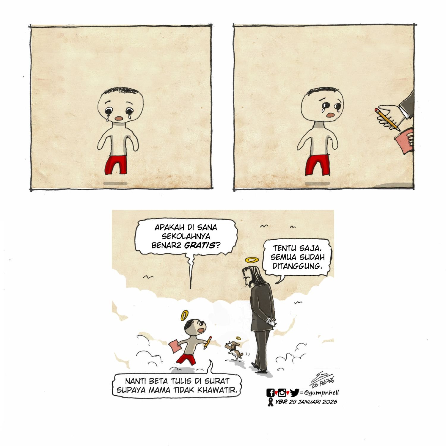 YBR, siswa SD yang memutuskan bun*h diri menunjukan betapa keroposnya pendanaan pendidikan kita sehingga YBR harus tertimpa empat tangga sekaligus: