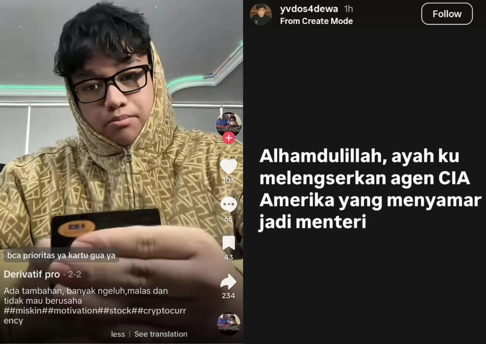 Yudo Sadewa, anaknya Pak Menkeu, di Insta Storynya memposting: