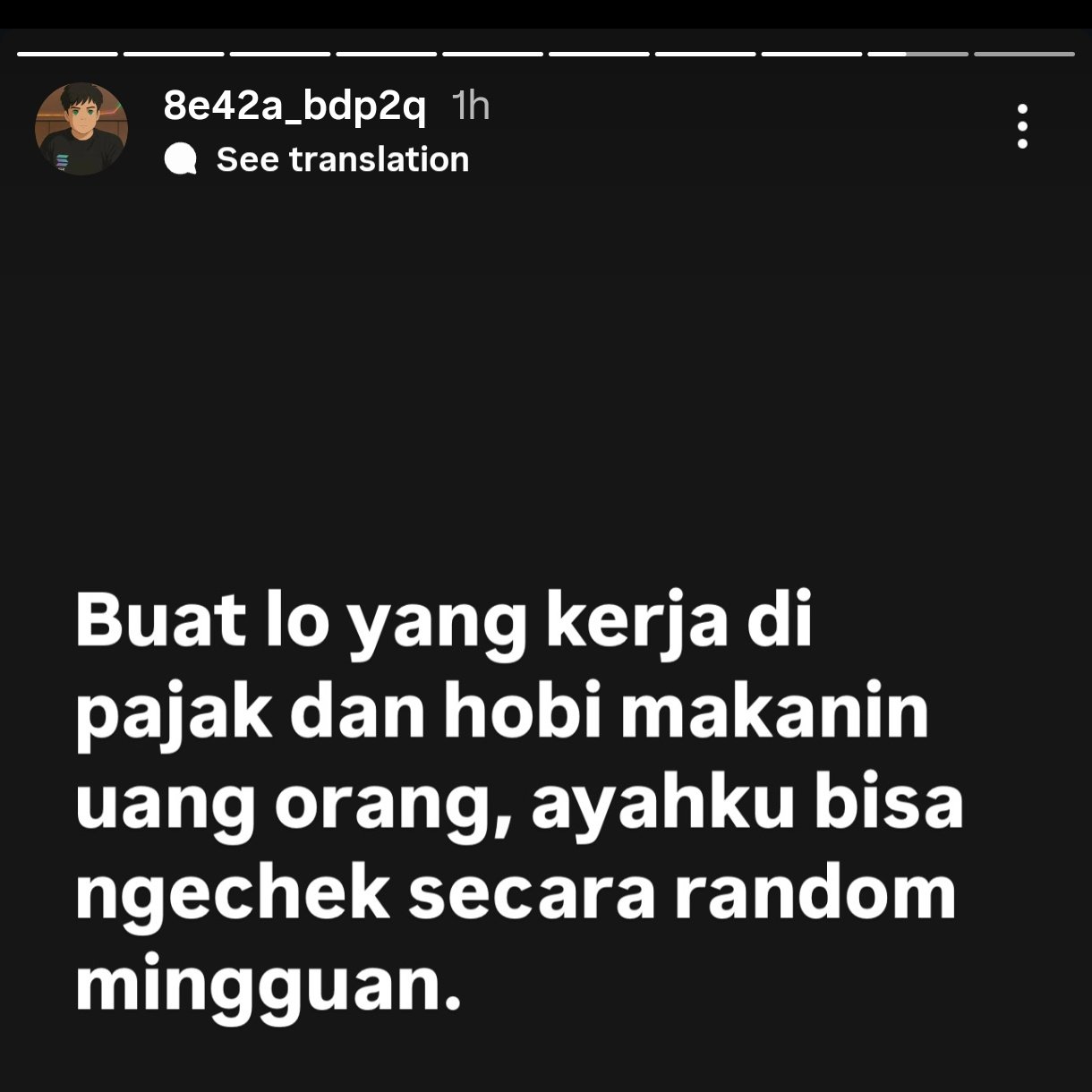 “Buat lo yang kerja di pajak dan hobi makanin uang orang, ayahku bisa ngechek secara random minggguan”
