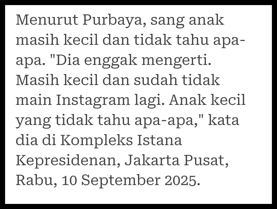 Walaupun sudah dilarang oleh Sang Ayah untuk tidak bermain medsos setelah heboh postingan “Sri Mulyani Agen CIA”, anak Pak Menteri Keuangan tak bisa untuk tidak main medsos dan terus menyuarakan pikirannya.