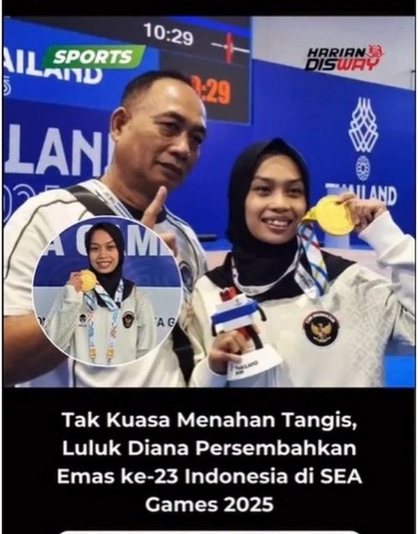Tangis haru pecah dari wajah Luluk Diana Tri Wijayana saat lagu kebangsaan Indonesia Raya menggema di arena angkat besi SEA Games Thailand 2025.