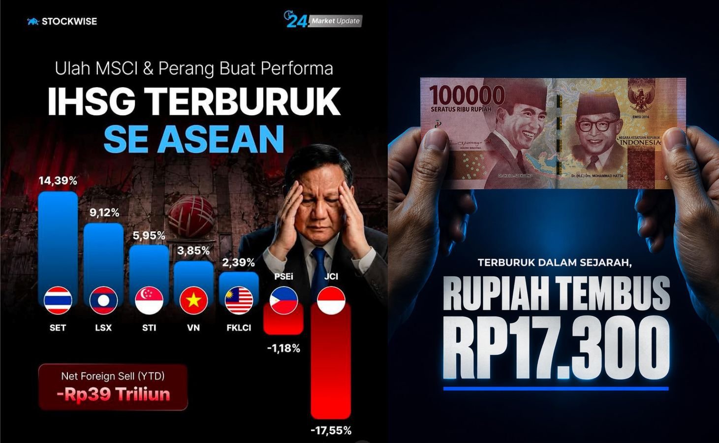 Berbagai indikator pelemahan ekonomi begitu kuat, dolar sudah longsor 12% Rp17.300-an sejak dia menjabat, disaat bursa ASIA naik, IHSG kita ambruk hampir 20%.