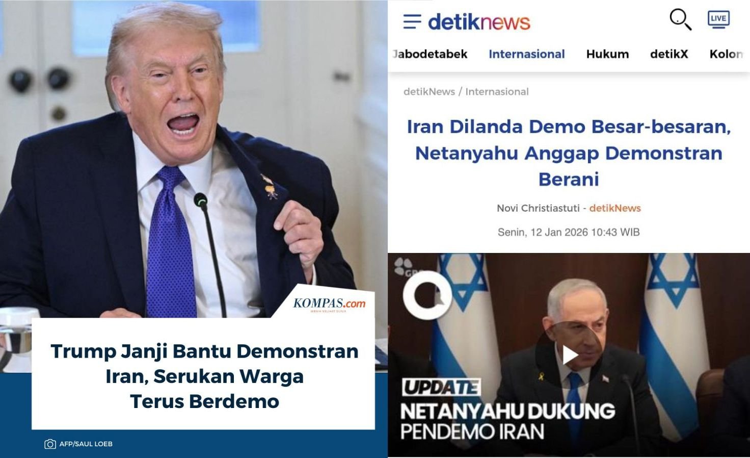 Sikap Trump yang sangat ingin intervensi di Iran saat ini adalah tekanan dari Netanyahu dan lobby Israel di AS, hal ini sudah disampaikan oleh Netanyahu saat dia berkunjung ke gedung putih akhir tahun lalu.