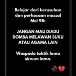 Belajar dari kerusuhan dan perkosaan massal Mei 98: JANGAN MAU DIADU DOMBA MELAWAN SUKU ATAU AGAMA LAIN ‼️ SOSIAL MEDIA|Sabtu, 30 Agustus, 2025oleh Admin Belajar dari kerusuhan dan perkosaan massal Mei 98: JANGAN MAU DIADU DOMBA