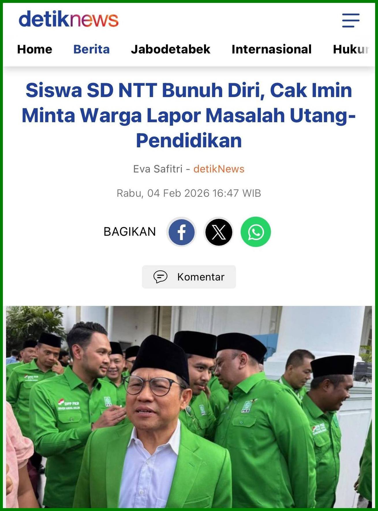 Ucapan cak Imin itu sebagai respon dari peristiwa tragis siswa SD di NTT yang nekat bunuh diri karena persoalan ekonomi.