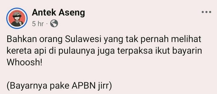Bahkan orang Sulawesi yang tak pernah melihat kereta api di pulaunya juga terpaksa ikut bayarin Whoosh!