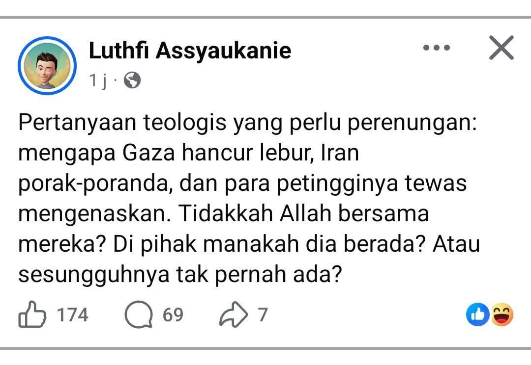 Akhirnya, pertanyaan “atau sesungguhnya Tuhan tak pernah ada?” adalah refleksi eksistensial yang lahir dari kepedihan, bukan semata dari argumentasi rasional. Jawaban agama bukan sekadar logika, tetapi juga kesaksian spiritual dan etika profetik: bahwa iman justru menemukan kedalamannya saat diuji. Dalam perspektif tauhid, Tuhan tidak absen dari sejarah; manusialah yang kerap absen dari nilai-nilai-Nya.
