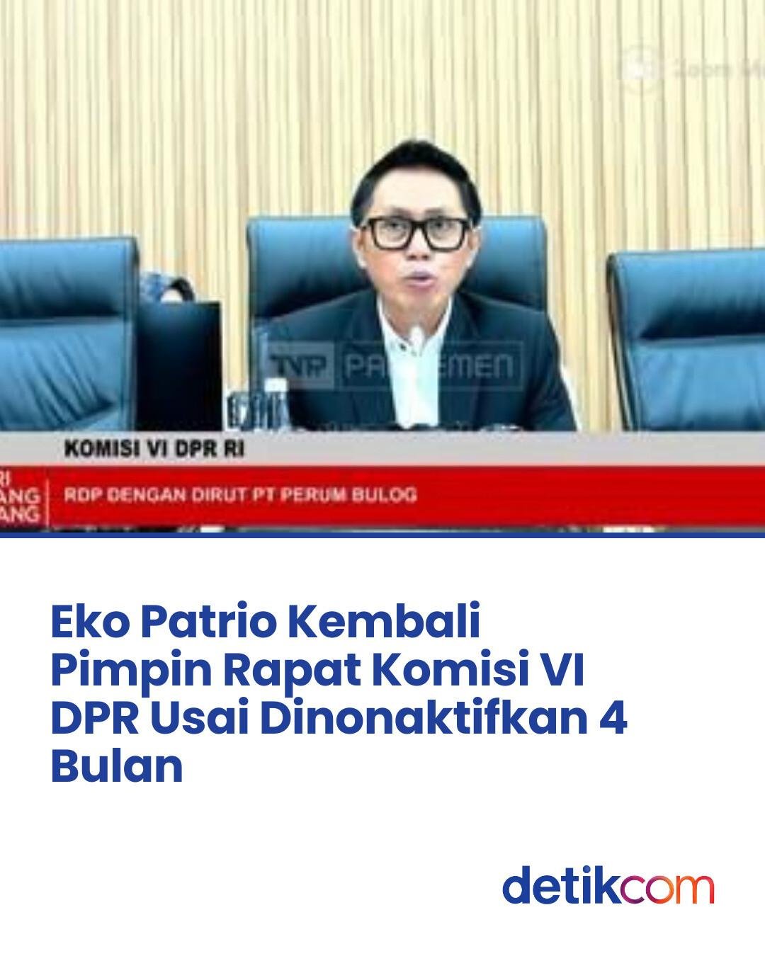 Wakil Ketua Komisi VI DPR Eko Hendro Purnomo atau Eko Patrio kembali memimpin rapat usai sempat dinonaktifkan selama 4 bulan. Eko memimpin rapat Komisi VI DPR bersama Perum Bulog.