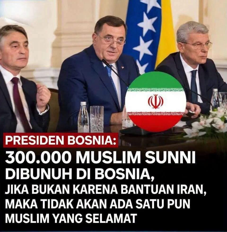 ENTAH POSTER INI CAPTIONNYA BENAR ATAU TIDAK, TAPI MEMANG BANTUAN IRAN UNTUK BOSNIA DI MASA PERANG SANGAT VITAL.