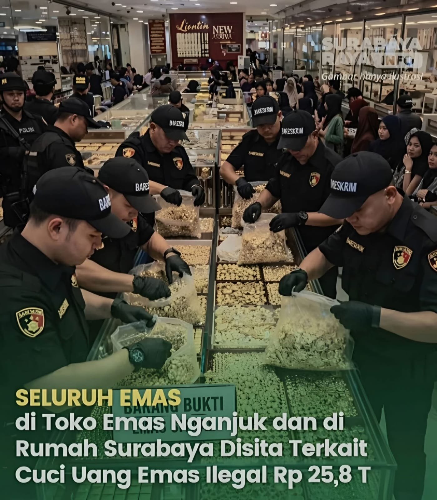 Tim penyidik Direktorat Tindak Pidana Ekonomi Khusus (Dittipideksus) Bareskrim Polri melakukan penggeledahan besar-besaran di Surabaya, Nganjuk, dan Jakarta terkait dugaan Tindak Pidana Pencucian Uang (TPPU) hasil tambang ilegal di Kalimantan Barat senilai Rp25,8 triliun. Dalam operasi tersebut, polisi menyita puluhan kilogram emas batangan dan dokumen penting.