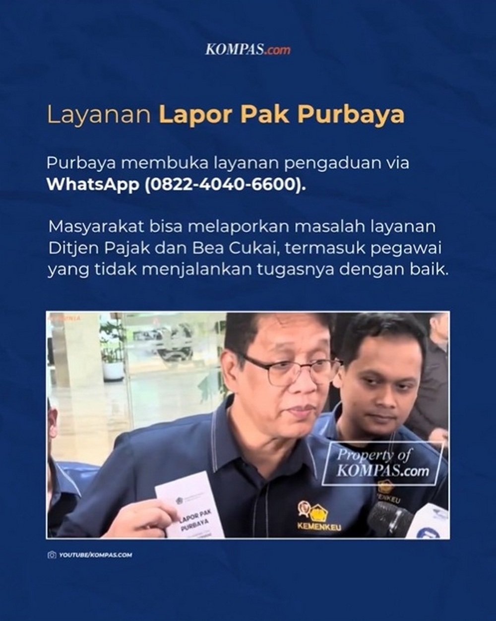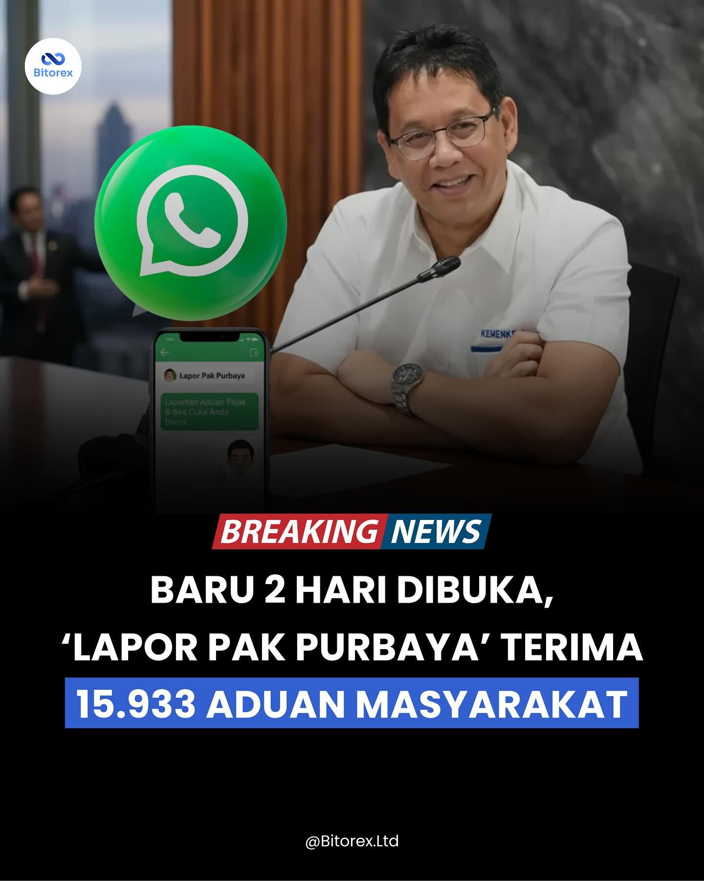 Program pengaduan masyarakat “Lapor Pak Purbaya” resmi dibuka pada 15 Oktober 2025 sebagai saluran bagi publik untuk melapor terkait layanan pajak dan bea cukai. Hanya dalam waktu dua hari, layanan melalui WhatsApp ini telah menerima 15.933 aduan.
