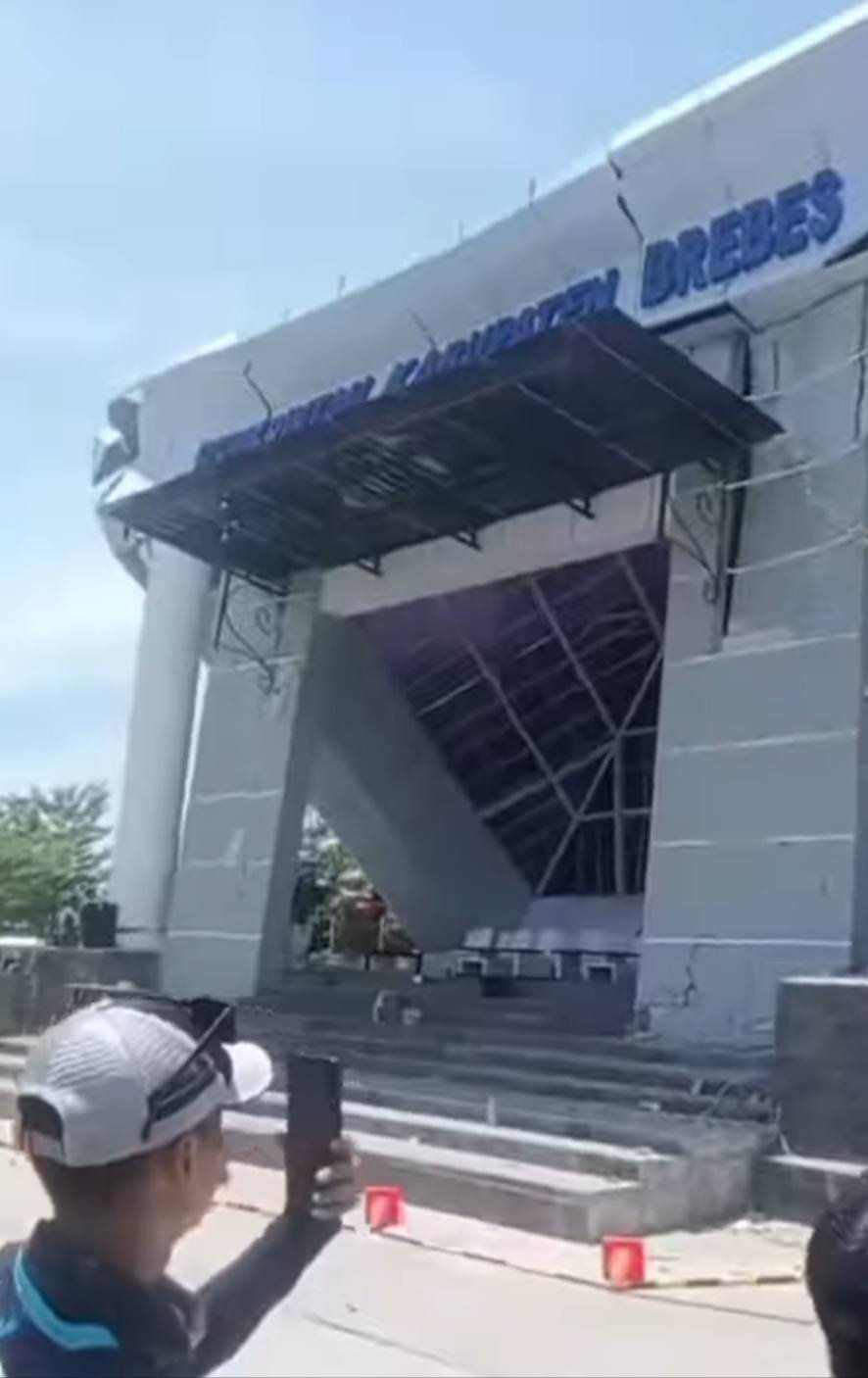Atap teras gedung Kantor Pemerintahan Terpadu (KPT) Kabupaten Brebes, Jawa Tengah roboh pada Minggu (21/9/2025). Peristiwa ini terjadi sekitar pukul 11.30 WIB.