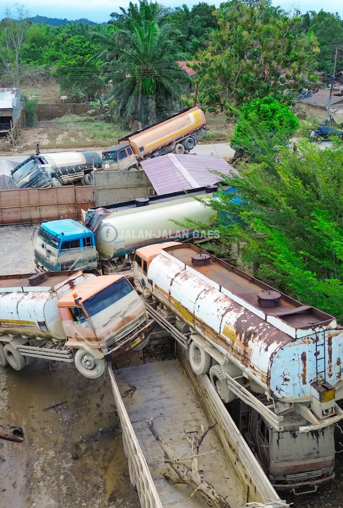 Lihat foto ini. Bayangkan betapa dasyatnya Banjir Bandang di Aceh Tamiang sampai membuat beberapa Truk sampai saling tumpang tindih.