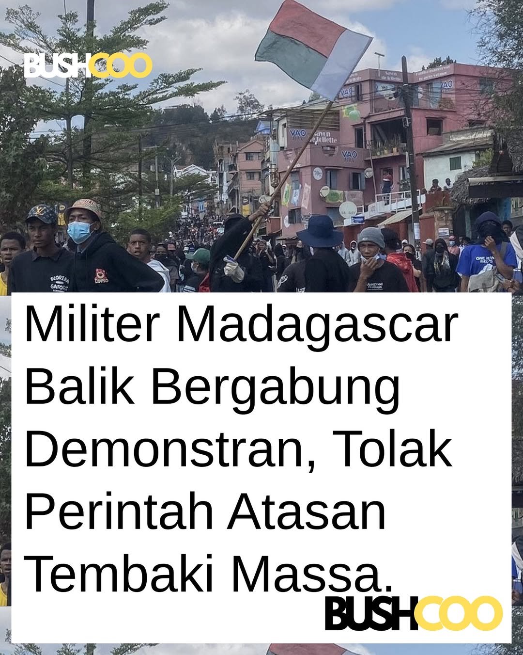 Sejumlah tentara bahkan mengibarkan bendera nasional Madagaskar, sementara para pengunjuk rasa meneriakkan “Terima kasih!” sebagai bentuk dukungan atas keberanian mereka.