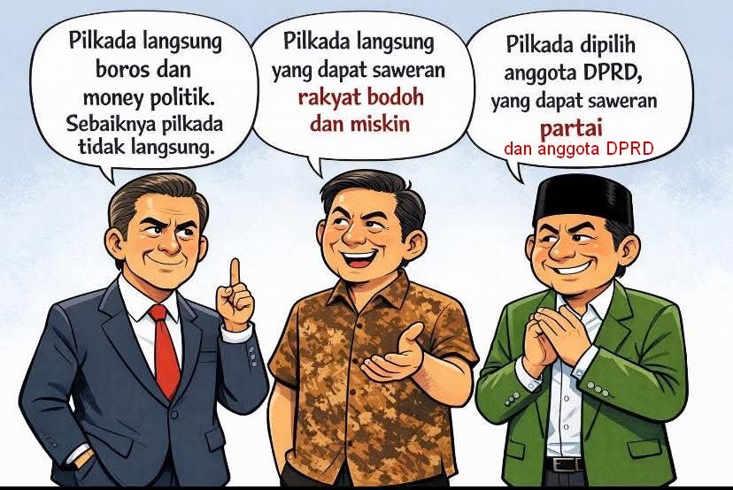 BEDA PILKADA LANGSUNG VS DPRDAdminKamis, 8 Januari, 2026Kamis, 8 Januari, 2026CATATAN A: Pilkada langsung boros dan money politik. Sebaiknya pilkada tidak langsung, tapi dipilih oleh DPRD. B: Pilkada langsung yang dapat saweran rakyat bodoh dan miskin. C: Pilkada dipilih DPRD, yang dapat saweran partai dan anggota DPRD. Jangan Lewatkan“Kenapa negara yang paling banyak perang dan miskin itu negara Islam?” Saya jawab ya….Elida konfirmasi Pengaruh Jokowi pada PolisiAMIEN RAIS BENAREkonomi Baik-Baik Saja? Rakyat Bahagia?Omon Omon… PRABOWO TARGETKAN KEMISKINAN EKSTREM HILANG DI 2029Tentara Bayaran, Gaji Tinggi, Resiko Kematian Tinggi