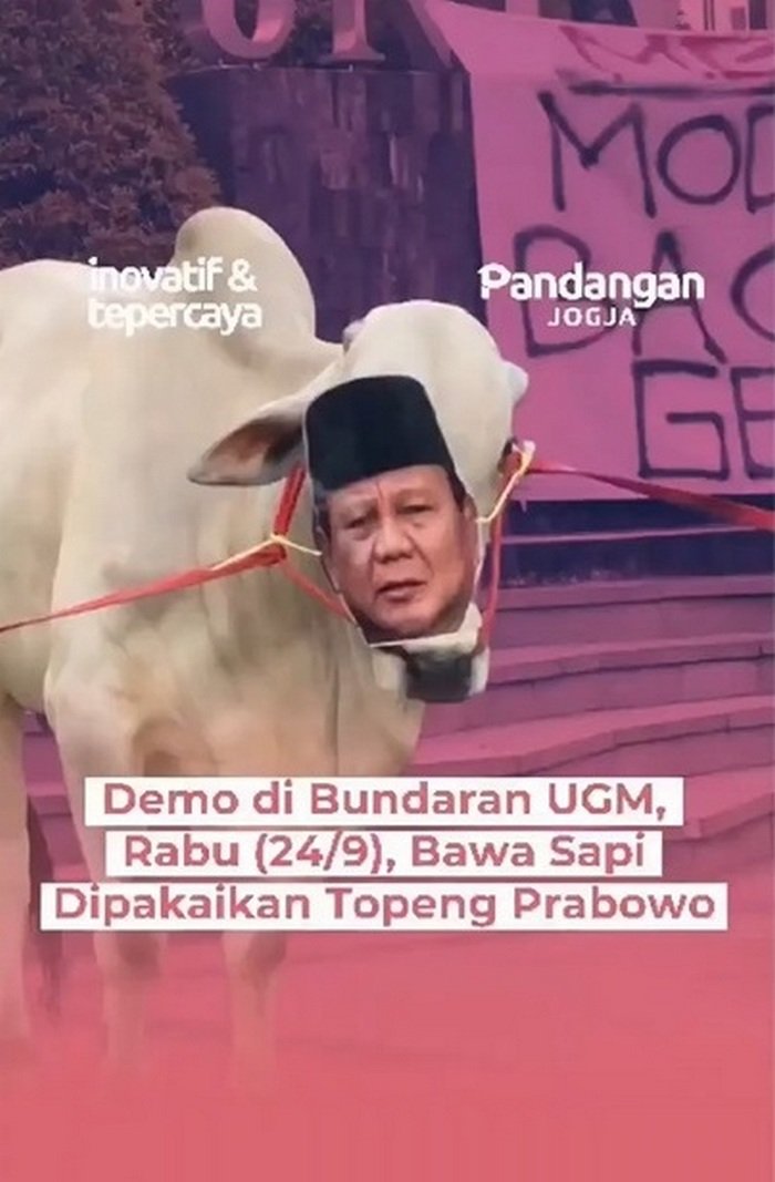 BEM KM UGM Demo MBG Bawa Sapi Bertopeng Wajah Prabowo.