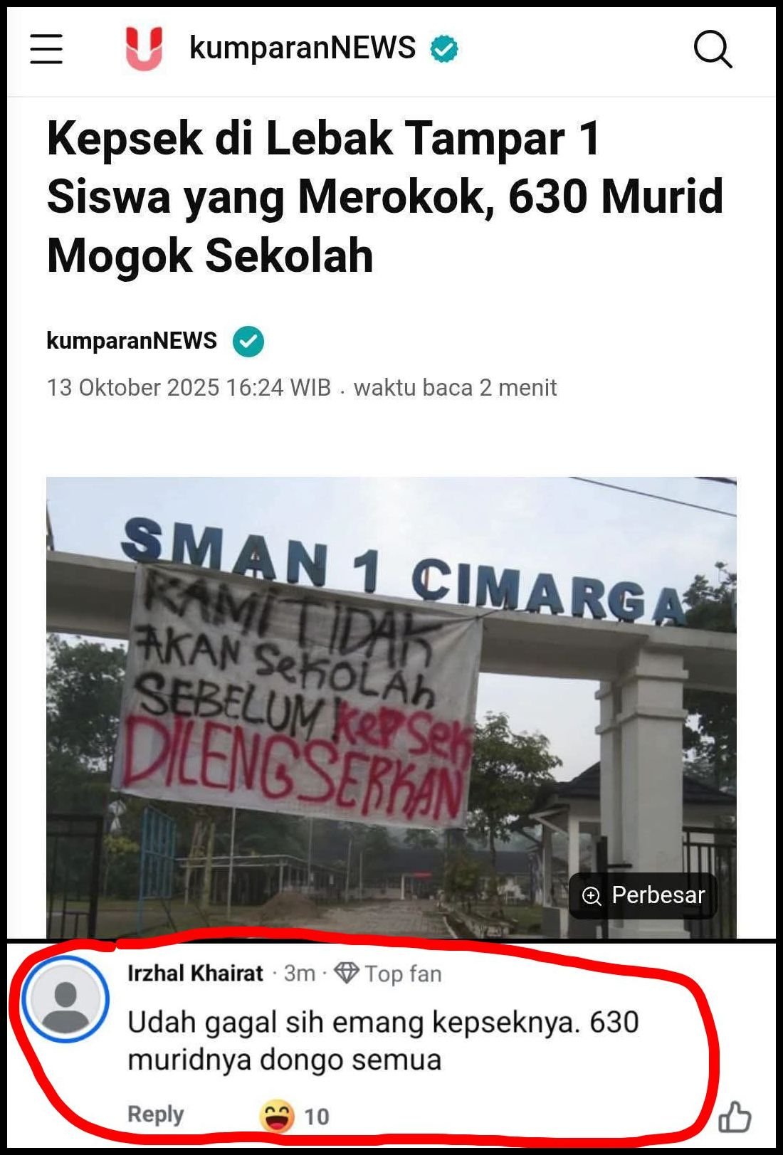 Herman Syah: 1 org bego ditampar, nah yg 630 lain ikut bego juga…. Ini sekolah kok nampung siswa bego semua?…kepsek mau dilengserkan? ….Heran deh🤣🤣