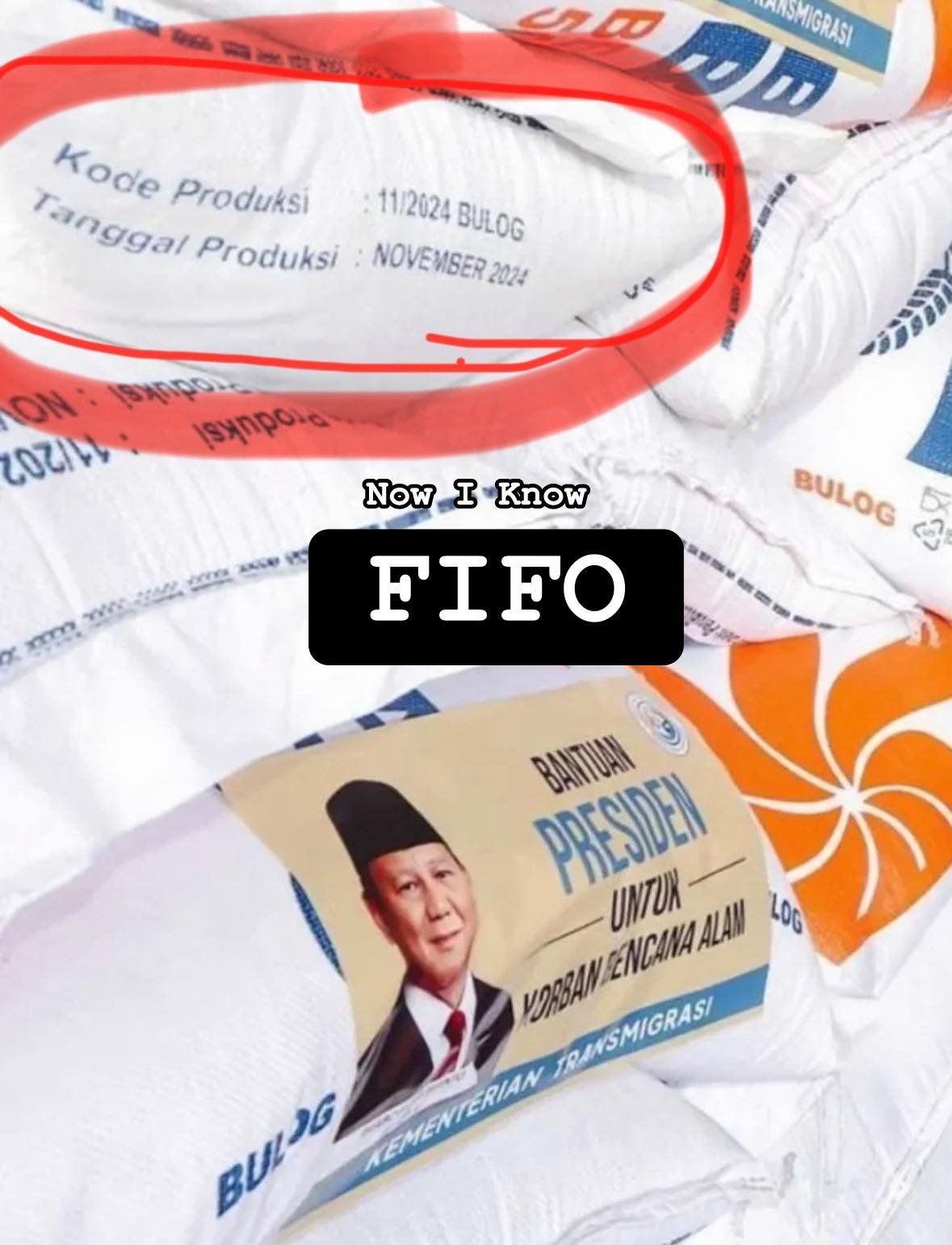Kita akan belajar pengelolaan gudang. Kita ambil contoh gudang beras. Pengelolaan stok, apalagi yang volumenya jutaan ton, memiliki satu mantra suci salah satunya FIFO, first in first out. Beras yang masuk dulu harus keluar dulu. Ini bukan sekadar aturan gudang; ini semacam filosofi hidup. Karena jika beras terlalu lama disimpan, ia mulai berubah. Aromanya menua, warnanya pudar, dan rasa nasi yang dihasilkan kehilangan jiwa. Beras bukan romansa yang makin indah ketika disimpan, ia lebih dekat dengan roti tawar kalau kelamaan, ia cuma jadi teman baik untuk kumbang beras.