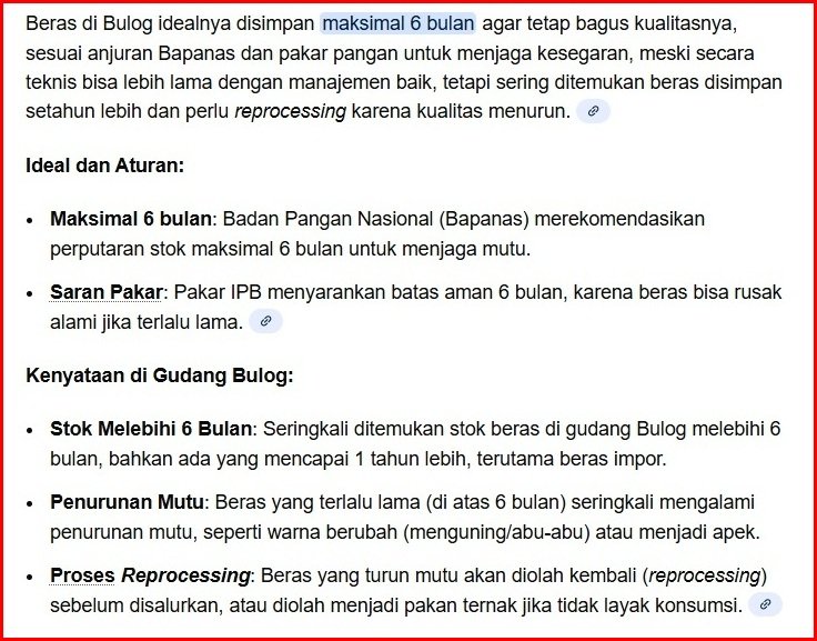 Stok Bulog yang dibagikan saat banjir itu tidak hanya cerita tentang cadangan yang cukup, produksi yang stabil, dan impor yang menjaga bantalan nasional, tapi juga tentang waktu. Sebab beras, seperti manusia, punya batas ketika diam terlalu lama: ia tidak rusak seketika, tapi pelan-pelan kehilangan versi terbaik dirinya.