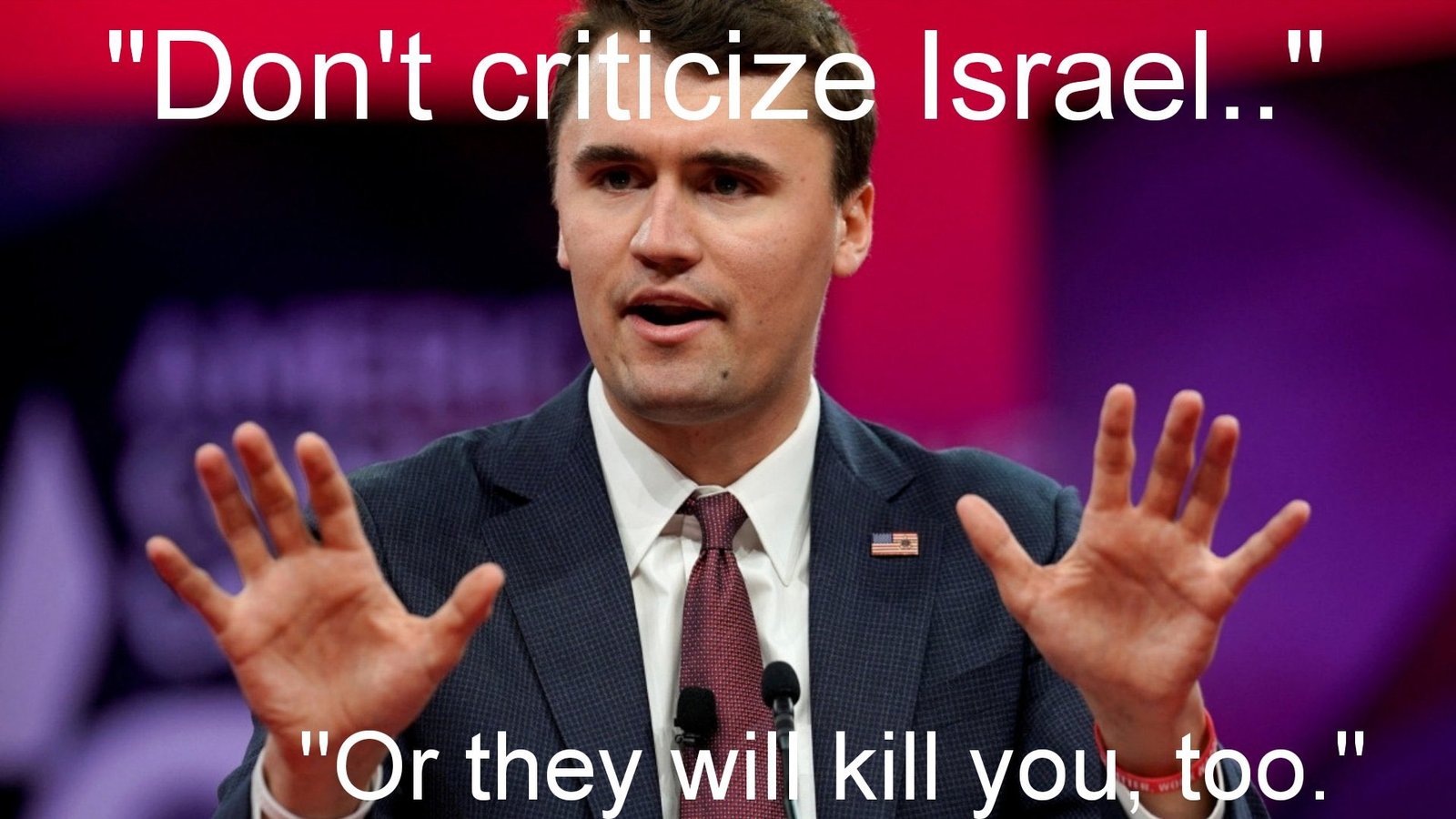 - Baru saja kehilangan donatur Yahudi yang sangat besar. $2 juta setahun karena kami (podcast Charlie Kirk) tidak akan membatalkan Tucker (Tucker Carlson). Saya berpikir untuk mengundang Candace. (Tucker Carlson adalah wartawan, penulis, host acara terkenal AS di Fox News yang mengkritik dukungan buta terhadap Israel yang menurutnya merugikan rakyat AS).
