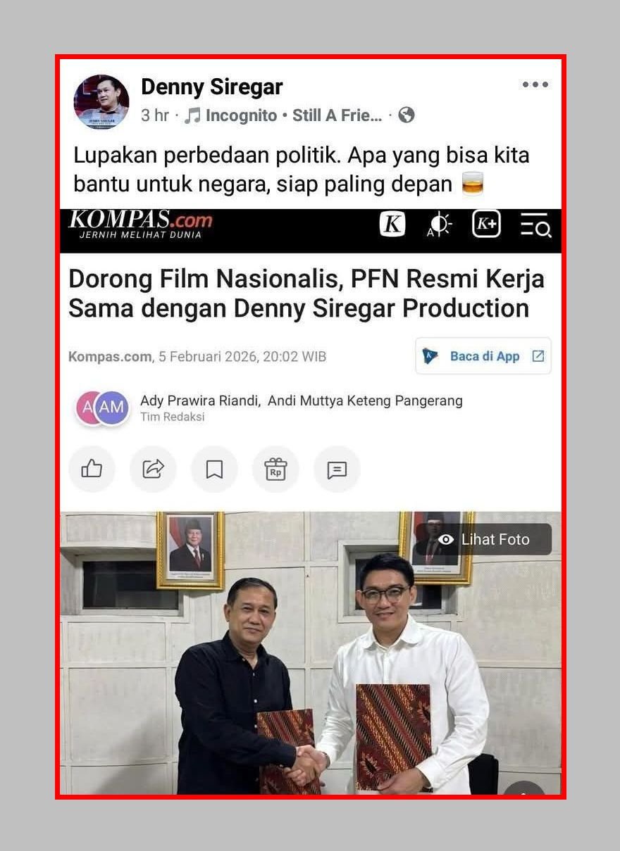 Pada berita soal Denny Siregar dengan PFN (BUMN PT Produksi Film Negara) yang KERJA SAMA ini bukan gratis coy tapi PFN jadi investor yang anggarannya dari pemerintah memberikan proyek film untuk dikerjakan perusahaan milik Densi dan bisa jadi proyek ini bernilai milyaran bukan ecek ecek juga gaes dan bukan kerja sama gak boleh mendapatkan laba/keuntungan bukan kerja sama sosial. Apalagi PFN beberapa tahun belakangan ini lbh terkenal memproduksi film/acara tv bermuatan PROPAGANDA PEMERINTAH. Proyek yg umumnya gak mengejar laba tapi yg penting anggaran habis. 🤣