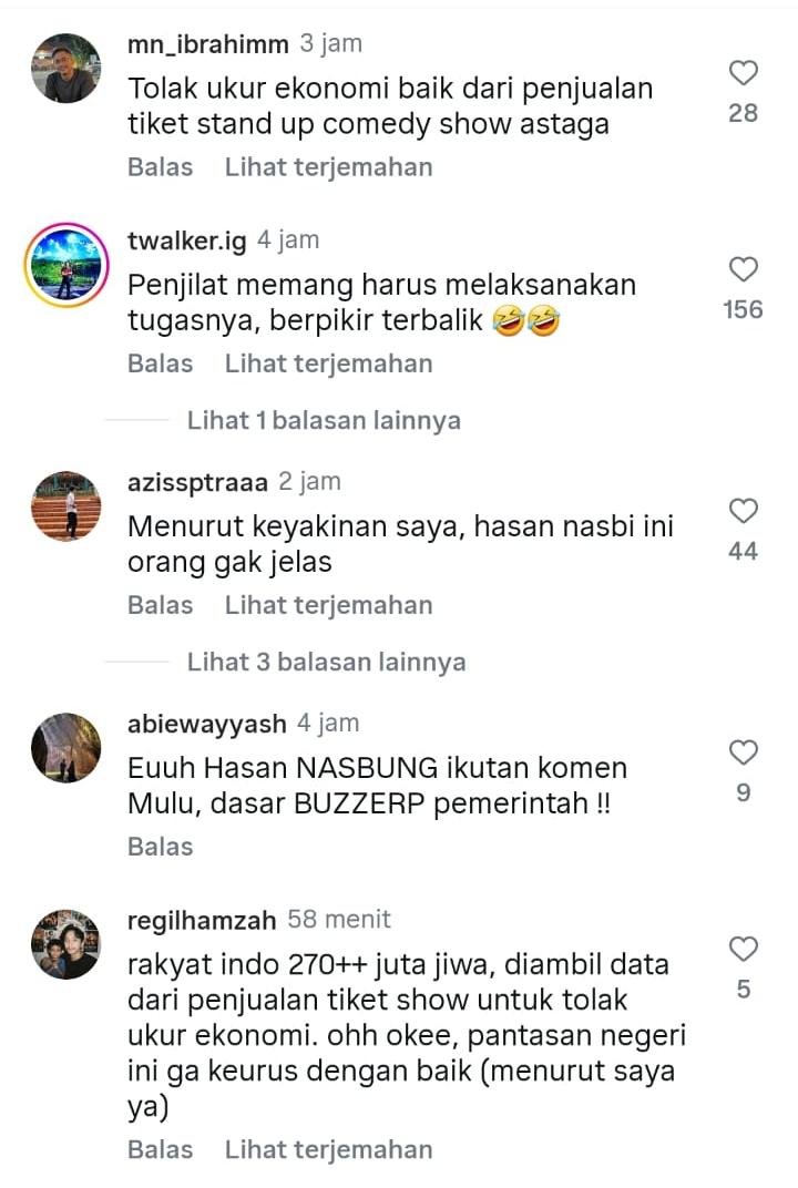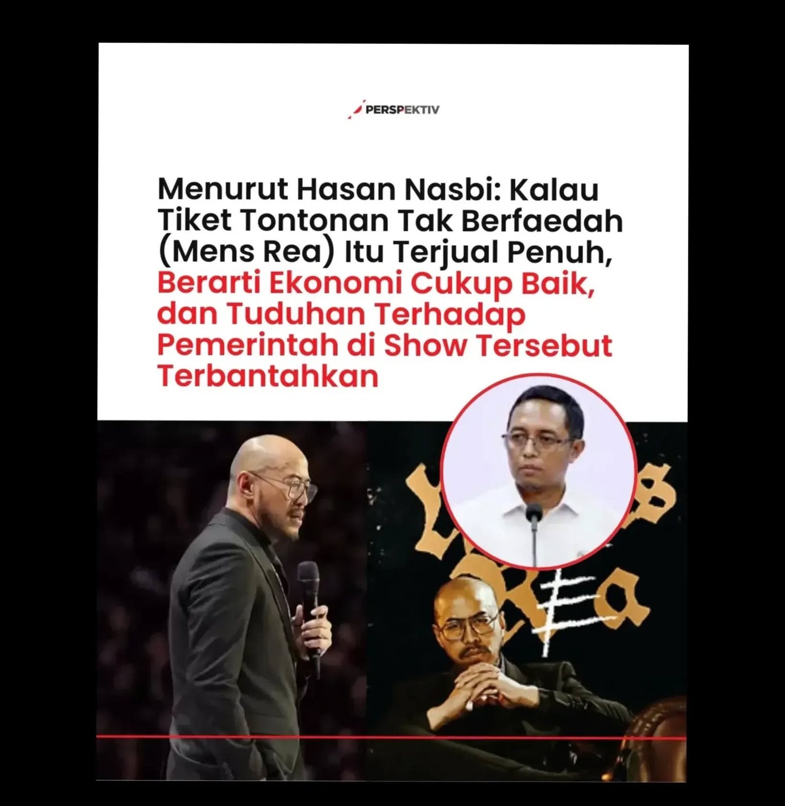 Menurut Hasan Nasbi kalau tiket show Mens Rea terjual habis, berarti ekonomi Indonesia baik-baik saja.